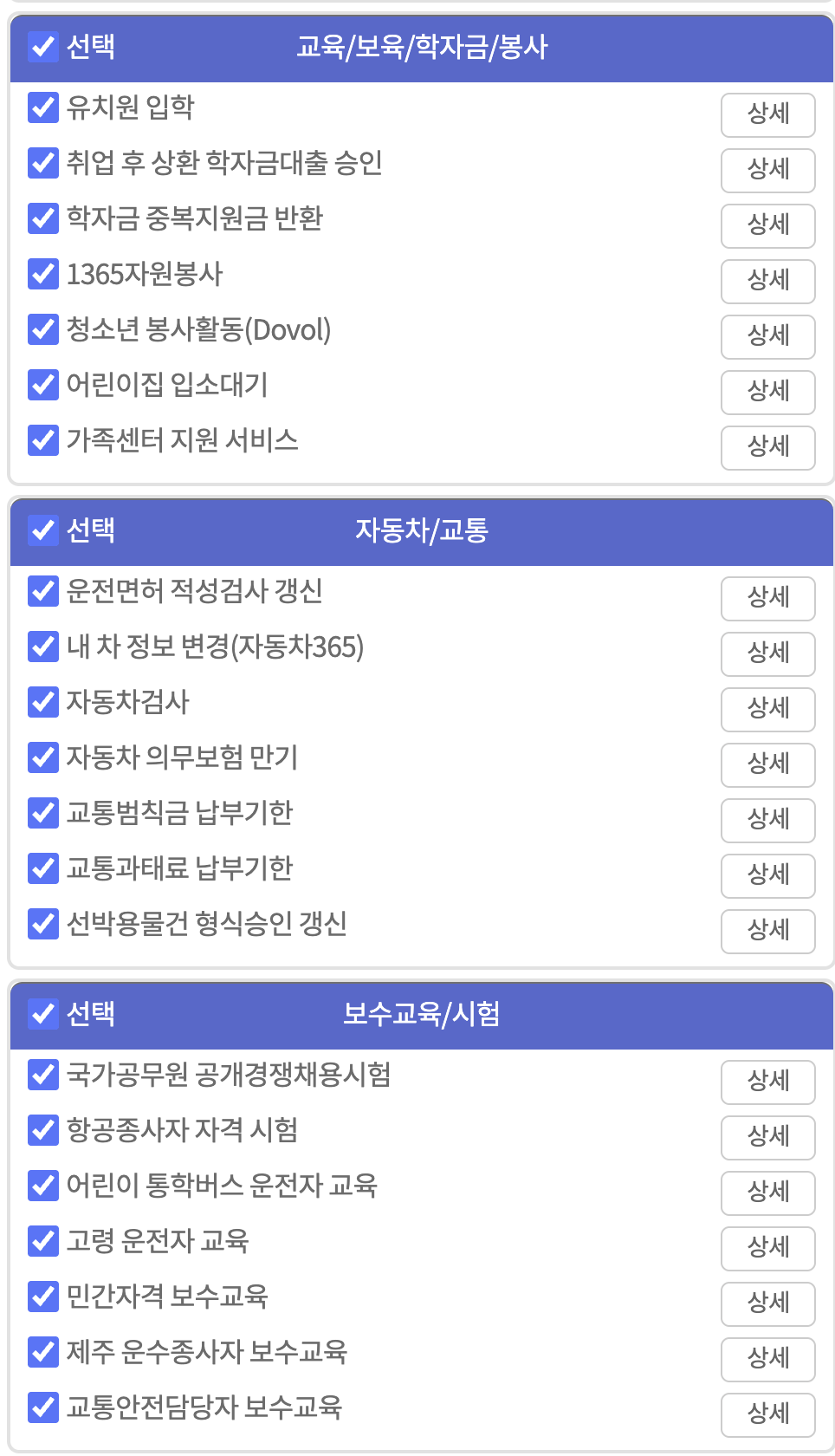 새로운 서비스 알림 목록을 확인하시고 싶다면 국민비서 홈페이지 바로가기 하셔서 확인하셔도 좋습니다.