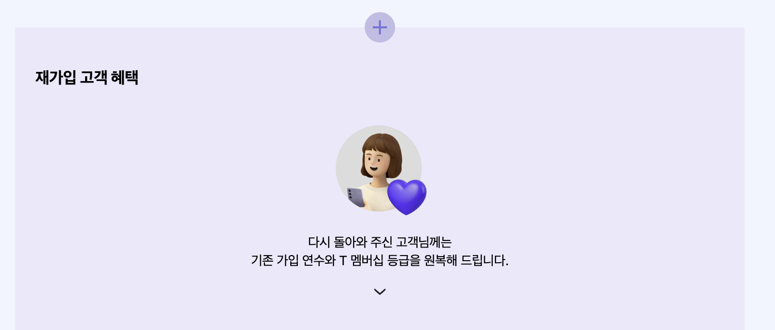 여기에 덧붙여 재가입 고객에게도 혜택을 준비했네요.