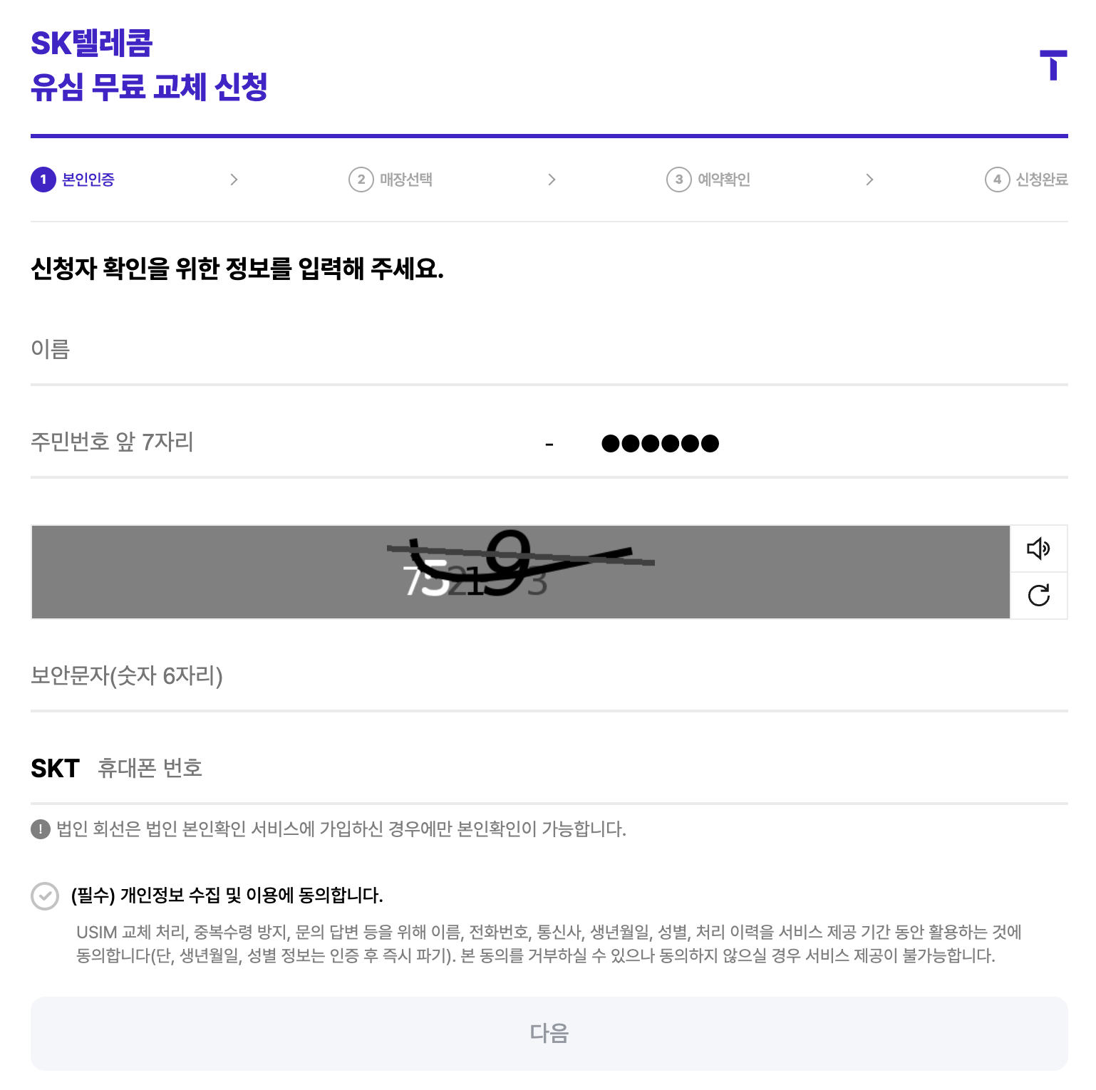 아래와 같이 SK텔레콤 유심무료 교체 신청을 하시면 됩니다.