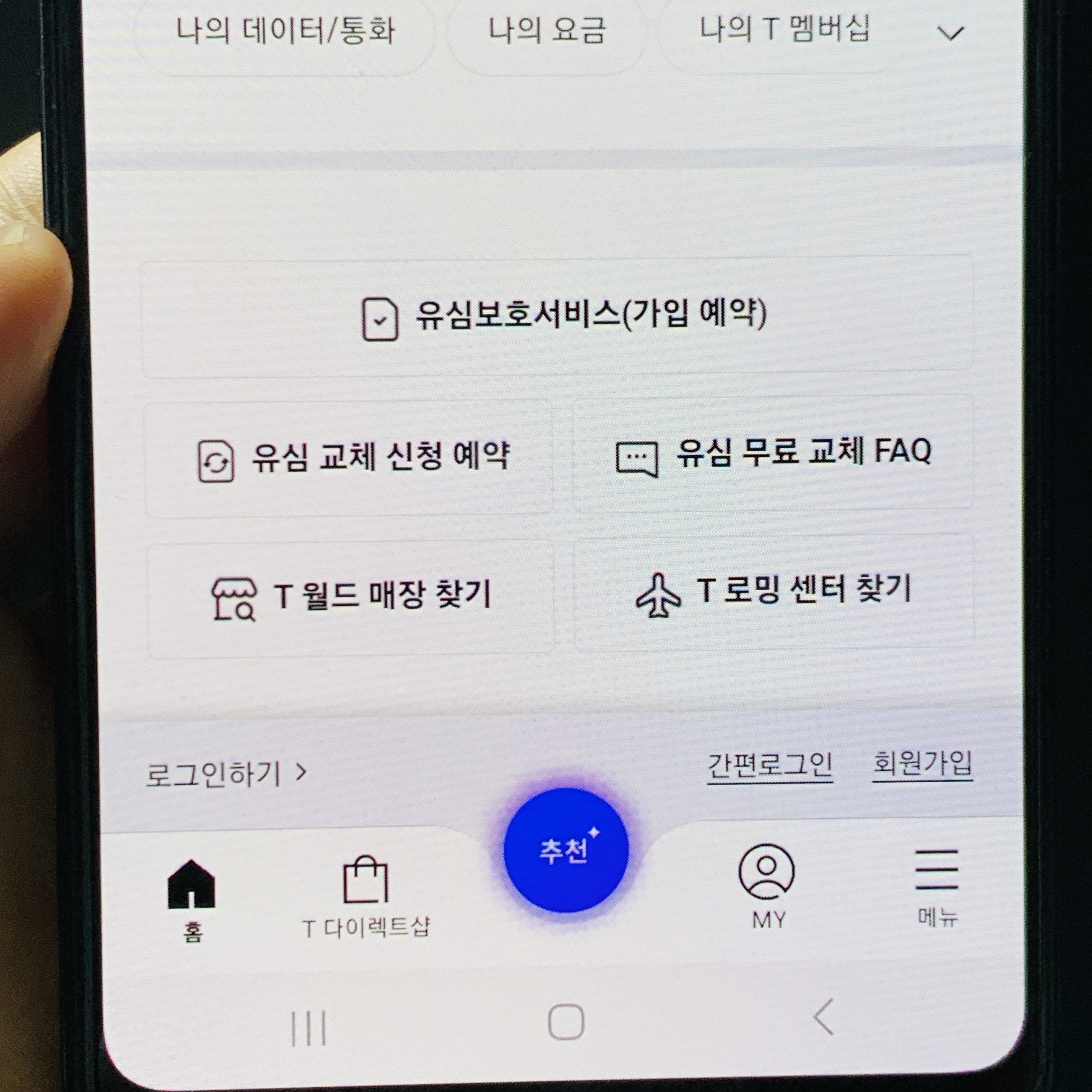 티월드 앱을 잘 설치하셨다면 이제는 유심보호서비스 가입을 진행해 보도록 하겠습니다.