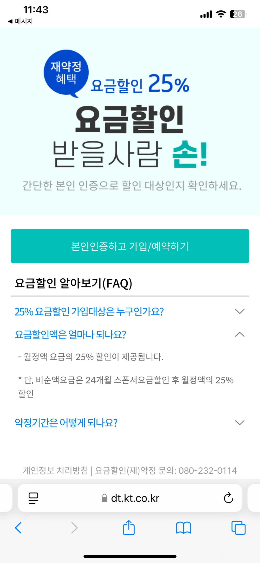 아래는 kt 선택약정 할인 예약 신청하여 25% 할인 받는 방법에 대한 내용입니다.