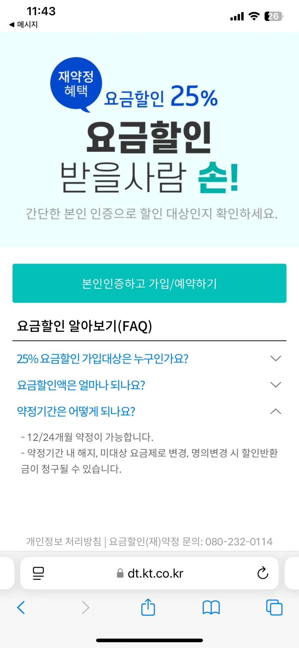 1. KT 선택약정 요금할인 예약 문자 or 신청 안내 확인