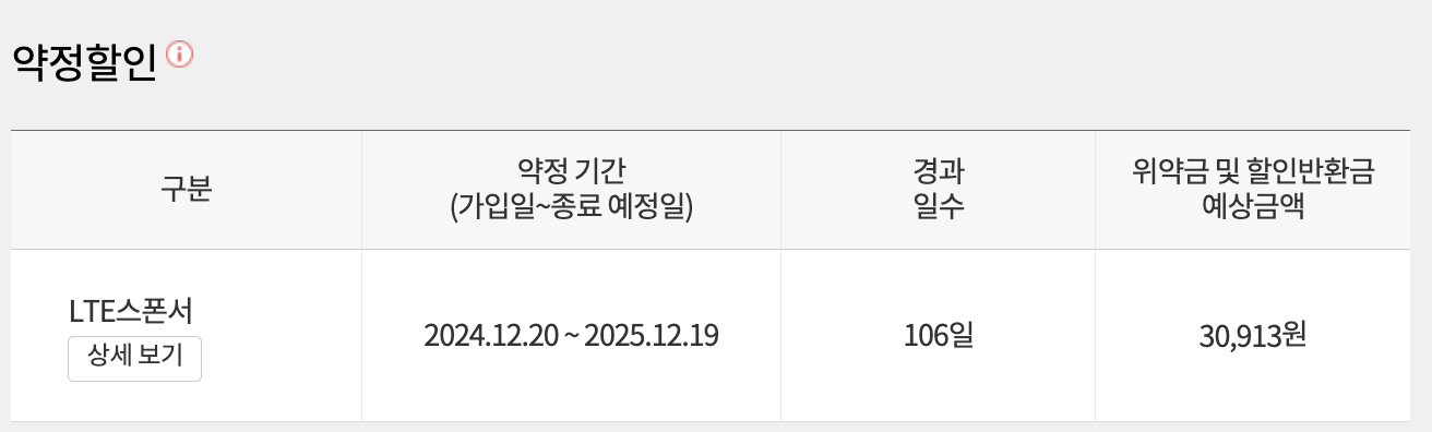 기간 내 해지 또는 미대상 요금제 변경 시 위약금(할인반환금) 발생할 수 있다고 해요.