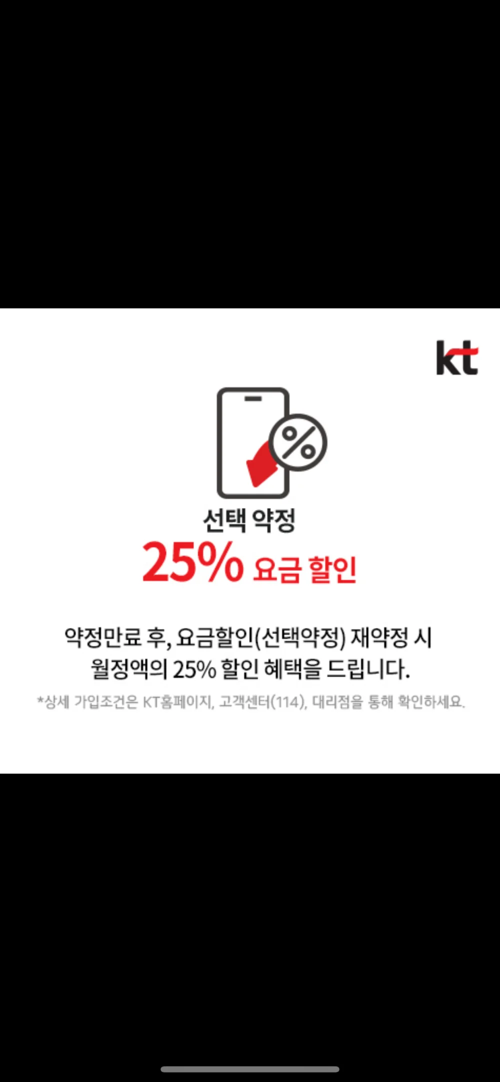 아래는 kt 선택약정 할인 예약 신청하여 25% 할인 받는 방법에 대한 내용입니다.