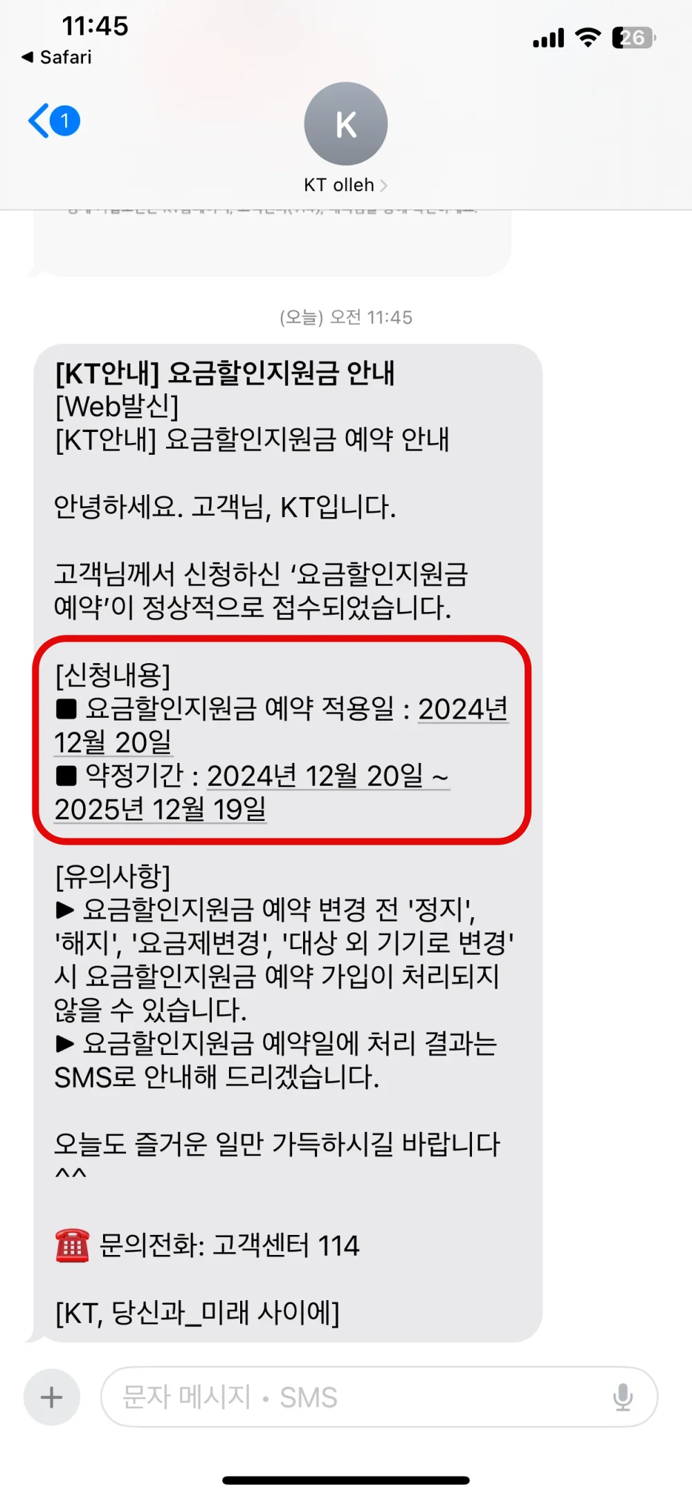 1. KT 선택약정 요금할인 예약 문자 or 신청 안내 확인